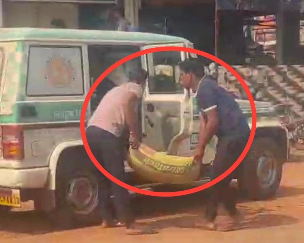 महतारी एक्सप्रेस में सीमेंट सप्लाई करते दिखे 102 के कर्मचारी, बीएमओ ने किया सस्पेंड, नोटिस जारी