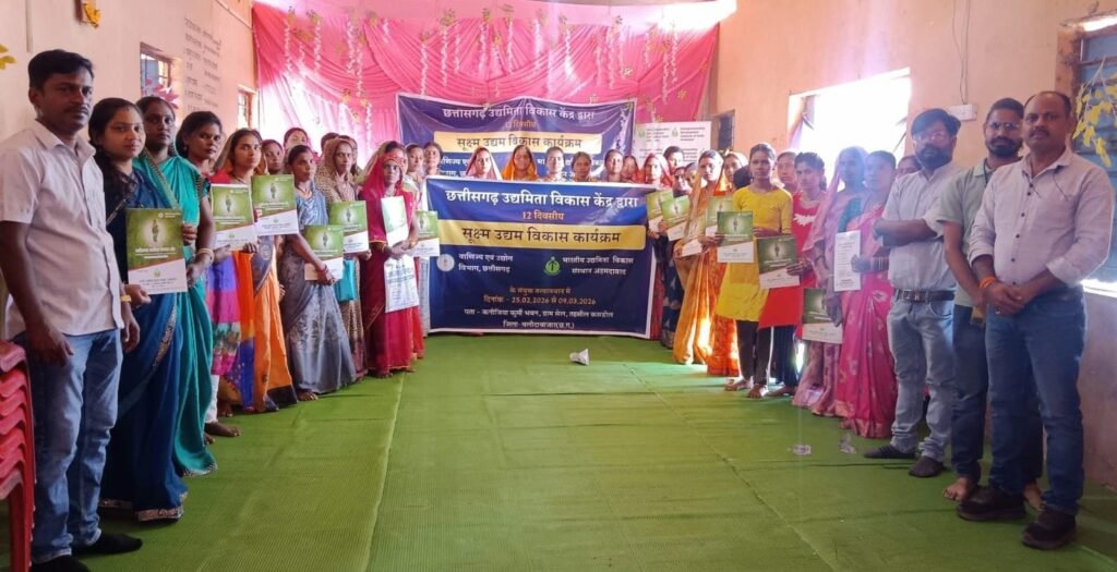 कसडोल। वाणिज्य एवं उद्योग विभाग, छत्तीसगढ़ शासन तथा भारतीय उद्यमिता विकास संस्थान (EDII) के संयुक्त तत्वावधान में दिनांक 25 फरवरी 2026 को ग्राम पंचायत सेल, कसडोल, जिला बलौदाबाजार में 12 दिवसीय सूक्ष्म उद्यम विकास कार्यक्रम (MEDP) का उत्साहपूर्वक शुभारंभ किया गया। यह प्रशिक्षण कार्यक्रम राज्य में उद्यमिता को प्रोत्साहित करने एवं स्थानीय स्तर पर स्वरोजगार के अवसर सृजित करने के उद्देश्य से आयोजित किया गया है।