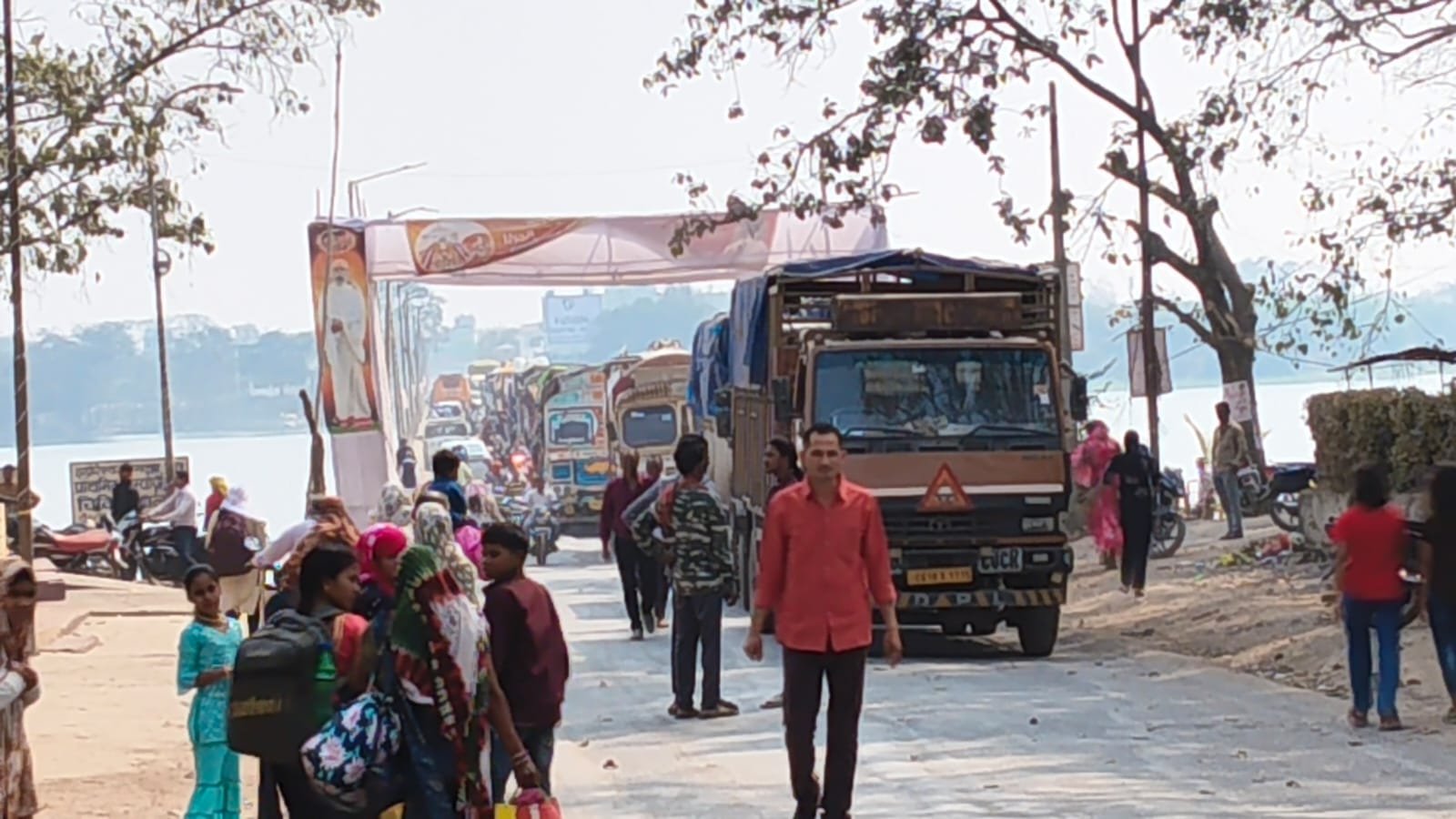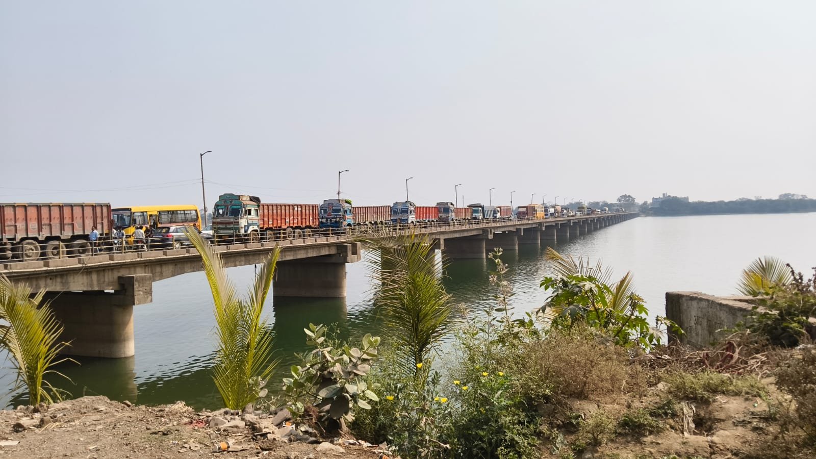 गिधौरी शिवरीनारायण शबरी सेतु में लगा घंटों जाम।