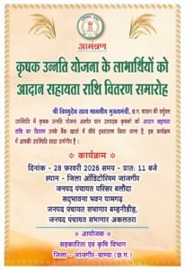 बलौदा में जनपद पंचायत परिसर में किसानों की उपस्थिति में कार्यक्रम आयोजित किया जाएगा।