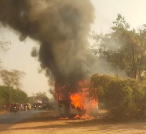 चालक की तत्परता के कारण बस में कोई भगदड़ नहीं मची और सभी यात्री सुरक्षित बाहर निकल आए।यात्रियों के उतरते ही आग ने पूरी बस को अपनी चपेट में ले लिया और कुछ ही देर में बस जलकर खाक हो गई। यात्रियों ने चालक के साहस और सूझबूझ की जमकर सराहना की।घटना के बाद स्थानीय ग्रामीणों ने यात्रियों को प्राथमिक सहायता उपलब्ध कराई। आग लगने के कारणों का अभी स्पष्ट पता नहीं चल पाया है, हालांकि प्रारंभिक तौर पर इंजन में तकनीकी खराबी को वजह माना जा रहा है। सूचना पर पुलिस और अग्निशमन विभाग के अधिकारी मौके के लिए रवाना हुए।