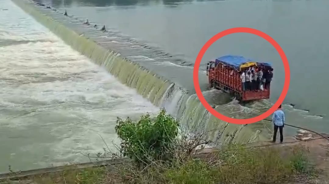वीडियो फुटेज में साफ देखा जा सकता है कि किस तरह तेज बहाव के बीच ट्रक धीरे-धीरे पानी में उतरता है और लोग दहशत के बावजूद उसमें सवार हैं।