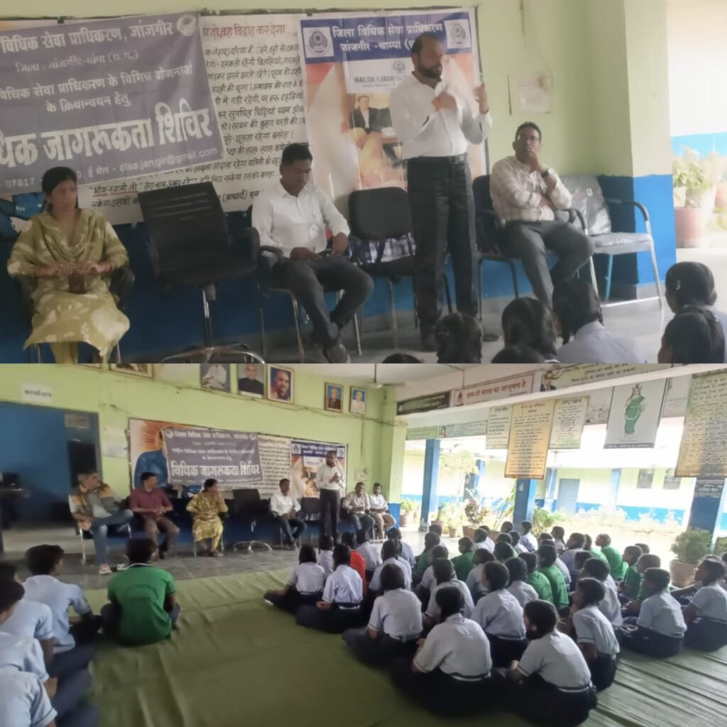 पामगढ़। विधिक जागरूकता शिविर का आयोजन – महा ज्यो राव फूले शा उच्च मा विद्या डोंगा कोहरोड में विधिक जागरूकता शिविर का आयोजन किया गया। इस आयोजन में विधिक सलाहकार गजानंद कश्यप नरेन्द्र कौशिक शामिल हुए। उन्होंने बच्चों को बाल विवाह, बाल श्रम, पास्को एक्ट के साथ साथ मौलिक अधिकार और मौलिक कर्तव्य के बारे में विस्तार से जानकारी प्रदान की। श्री कश्यप ने महिला उत्पीड़न, बालिका उत्पीड़न के बारे में बताते हुए टोल फ्री नंबर की भी जानकारी दी। आधार कार्ड और अपार आई डी बनाने पर भी जोर दिया।