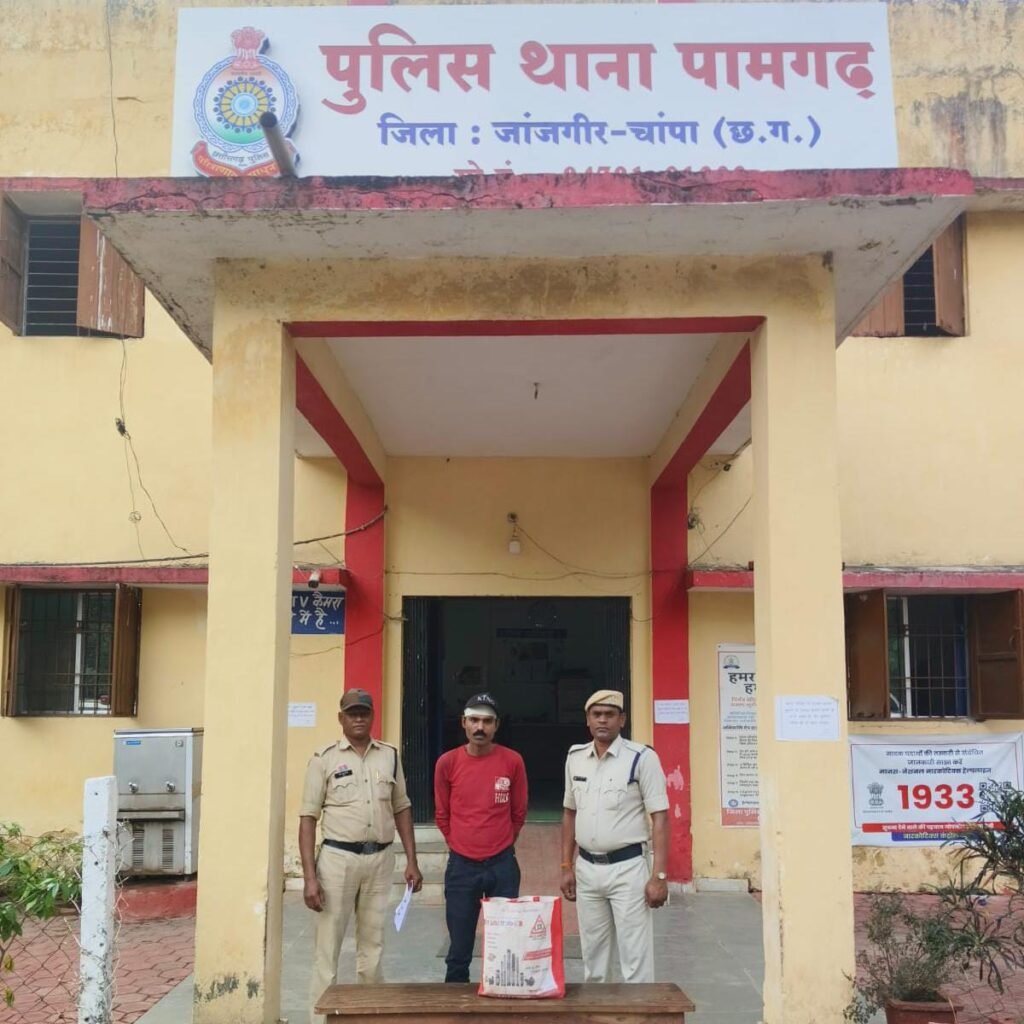 पामगढ़ । विजय कुमार पाण्डेय (IPS) पुलिस अधीक्षक जांजगीर चांपा के निर्देशन में जिले में अवैध शराब बिक्री पर अंकुश लाने के लिए जिला पुलिस जांजगीर द्वारा लगातार कार्रवाई की जा रही है इसी क्रम में थाना पामगढ़ पुलिस द्वारा अवैध शराब बिक्री करने वालों के विरुद्ध कार्यवाही किया गया जिसमें रेड कार्यवाही कर आरोपी गोलू पाण्डेय के कब्जे से 07 लीटर अवैध कच्ची महुआ शराब कीमती 1400/₹ रुपये को बरामद किया जाकर आरोपी के विरुद्ध धारा 34 (2) आबकारी एक्ट का घटित करना पाए जाने से विधिवत कार्यवाही कर थाना पामगढ़ में अपराध क्रमांक 513/25 धारा 34(2)आबकारी एक्ट पंजीबद्ध कर आरोपी को विधिवत गिरफ्तार कर न्यायिक रिमांड पर भेजा गया है।