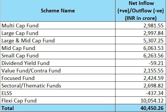 मार्च में इक्विटी म्यूचुअल फंड में निवेश 56% बढ़कर 40,450 करोड़ रुपये हो गया, जबकि फरवरी में यह 25,977 करोड़ रुपये था। Y-O-Y आधार पर, इनफ्लो 61% बढ़कर 25,082 करोड़ रुपये से ज़्यादा हो गया।