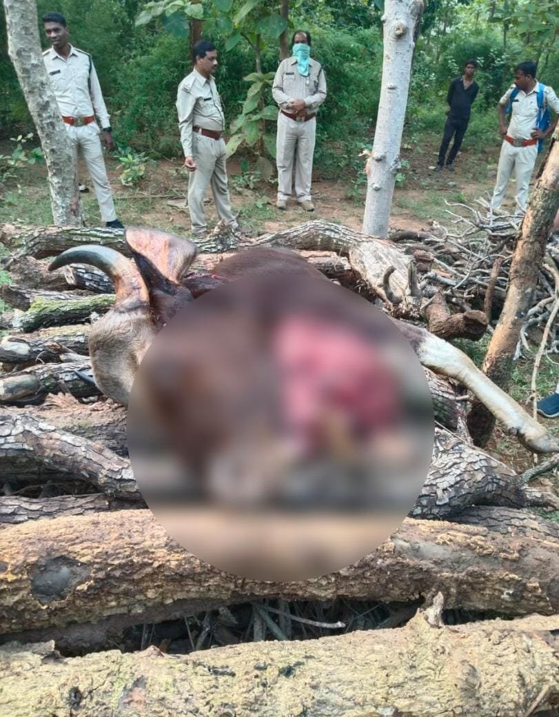 अर्जुनी परिक्षेत्र के बिलारी गांव में बायसन (गौर) का शिकार