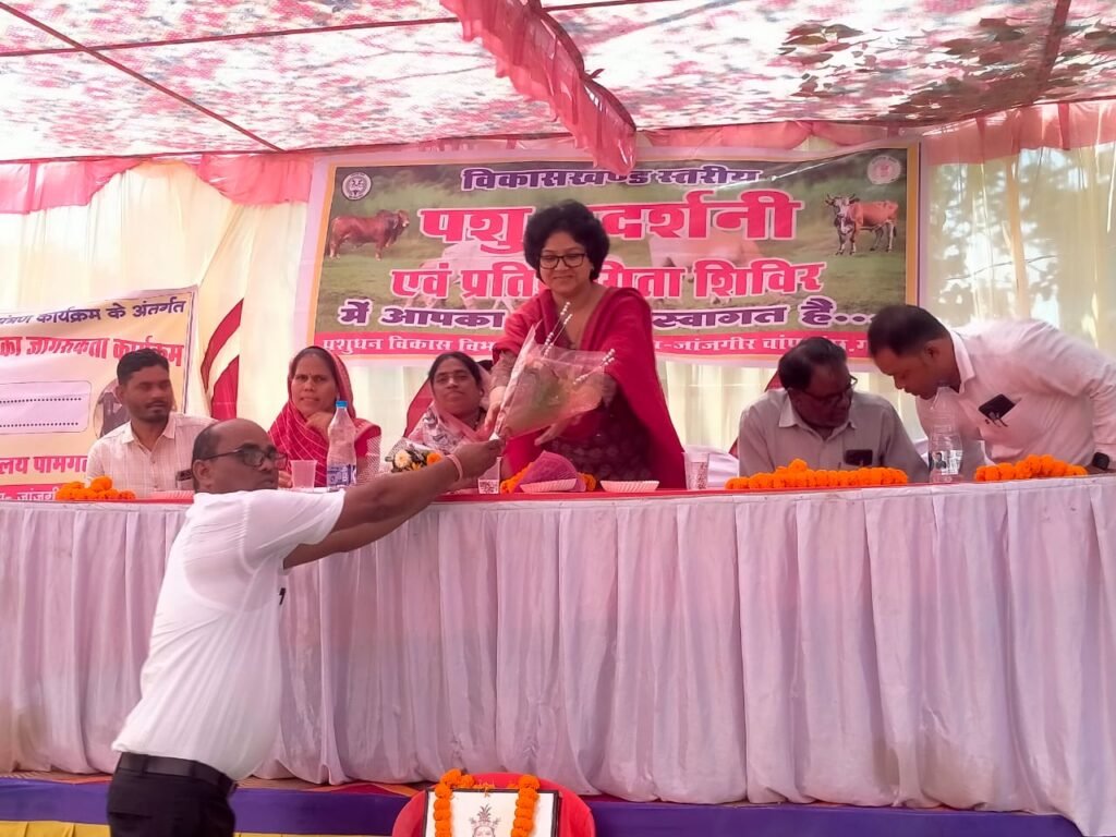 जांजगीर चांपा। पामगढ़ विकासखंड के ग्राम धरदेई में 09 अप्रैल 2026 को विकासखंड स्तरीय पशुधन व कुक्कुट प्रदर्शनी एवं पशु मेला का भव्य आयोजन किया गया। इस आयोजन में क्षेत्र के पशुपालकों ने उत्साहपूर्वक भाग लिया और विभिन्न नस्लों के पशुओं का प्रदर्शन किया गया। प्रदर्शनी में पशुओं को अलग-अलग वर्गों में विभाजित कर उनकी गुणवत्ता, स्वास्थ्य एवं देखरेख के आधार पर मूल्यांकन किया गया। चयनित पशुपालकों को प्रथम, द्वितीय, तृतीय एवं सांत्वना पुरस्कार प्रदान कर सम्मानित किया गया।