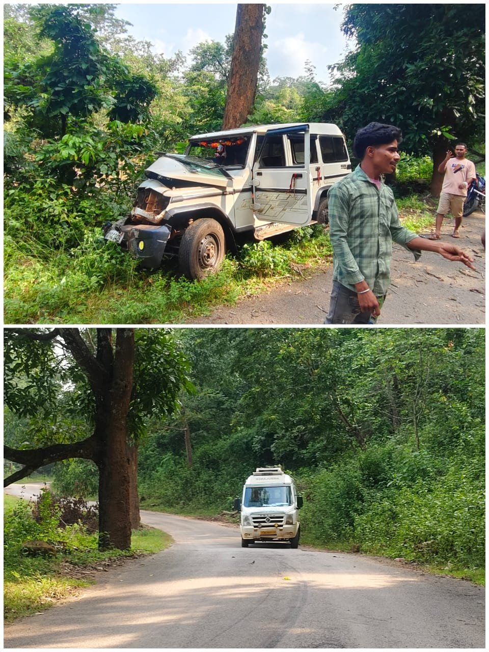 बोलेरो वाहन अनियंत्रित होकर सड़क किनारे पेड़ से टकराया 108 खराब तो दूसरा गाड़ी नई
