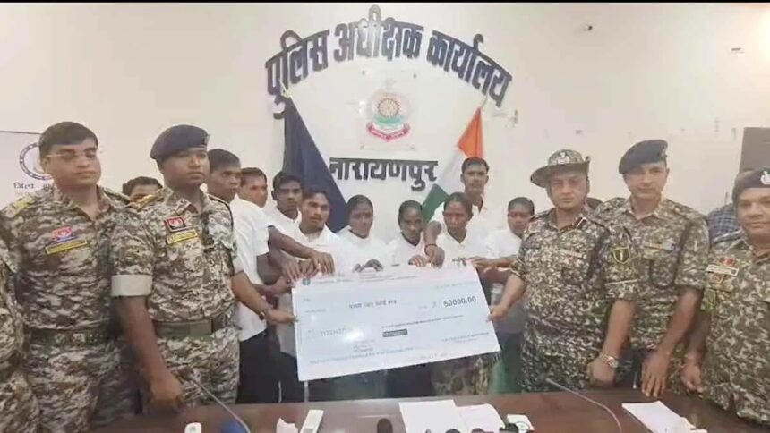 नारायणपुर। छत्तीसगढ़ में नक्सली बैकफुट पर आ गए है और सरकार से सीजफायर की अपील की है. वहीं इसी बीच नारायणपुर में 5 महिला सहित कुल 12 माओवादियों ने सरेंडर किया है. सभी माओवादियों पर कुल 18 लाख का इनाम घोषित था. इस दौरान BSF, व ITBP के अधिकारी भी मौजूद रहे.