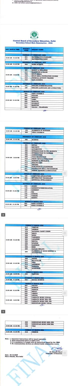 CBSE ने जारी की 10वीं और 12वीं बोर्ड परीक्षा 2026 की डेट शीट, जानिए कब से शुरू होंगी परीक्षाएं