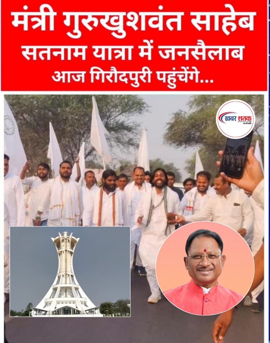 मुख्यमंत्री विष्णुदेव साय आज दर्शन करने पहुचेंगे गिरौदपुरी, गुरु खुशवंत साहेब सतनाम सद्भाव पदयात्रा पर, बाबा गुरुघासीदास जी के दर्शन करने गिरौदपुरी धाम पहुँच रहें श्रद्धालु, सतनामी कर्मचारी कल्याण संघ के पदाधिकारी श्रद्धालुओं को खिला रहें प्रसाद, प्रशासन की चौकस है व्यवस्था