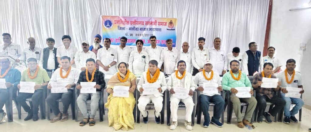 बलौदाबाजार। प्रगतिशील छत्तीसगढ़ सतनामी समाज जिला बलौदाबाजार भाटापारा(CHHATTISGARH SATNAMI SAMJ DISTRICT) के जिला अध्यक्ष एवं जिला पदाधिकारी का निर्वाचन प्रदेश अध्यक्ष एल एल कोशले एवं प्रदेश पदाधिकारीयों के निर्देश पर 2 नवंबर को महंत नयन दास स्मृति स्थल बलौदाबाजार में आयोजित किया गया। जिसके लिए प्रदेश कार्यालय से मुख्य निर्वाचन अधिकारी के रूप मे दिनेश बंजारे प्रदेश सहसचिव,सहायक निर्वाचन अधिकारी यादराम हिरवानी कार्यकारिणी सदस्य एवं निर्वाचन पर्यवेक्षक सत्येंद्र खुंटे कार्यकारिणी सदस्य उपस्थित थे। एवं वरिष्ठ प्रदेश उपाध्यक्ष सरजू प्रसाद घृतलहरे,प्रदेश उपाध्यक्ष दिनेश लाल जांगड़े एवं प्रदेश महासचिव मोहन बंजारे,पूर्व प्रदेश महासचिव एवं वरिष्ठ कार्यकारिणी,(EXECUTIVE)एस आर बंजारे, युवा प्रकोष्ठ के प्रदेश उपाध्यक्ष दिनेश लहरे,प्रदेश कार्यकारिणी सदस्य गणेश प्रसाद बघेल, जिला अध्यक्ष देवेन्द्र चतुर्वेदी,रायपुर शहर उपाध्यक्ष महेंद्र साय,संरक्षक सदस्य फूलचंद घृतलहरे,सुखनंदन बघेल युवा प्रकोष्ठ जिलाध्यक्ष,जगमोहन घृतलहरे प्रवक्ता युवा प्रकोष्ठ, कुमार भारद्वाज कार्यकारिणी प्रदेश युवा प्रकोष्ठ के मार्गदर्शन व गरिमाय उपस्थिति में चुनाव संपन्न कराया गया। जिला अध्यक्ष पद के लिए कुल 6 प्रत्याशी मैदान में थे जिला उपाध्यक्ष के लिए भी 6 प्रत्याशी मैदान में थे सचिव के लिए दो अभ्यर्थियों ने आवेदन किए थे समाज के लोगों ने आपसी समन्वय बनाकर सर्वसम्मति से दीपक घृतलहरे को जिला अध्यक्ष एवं जिला सचिव सुशील बंजारे तथा उपाध्यक्ष पद पर बी एल दिवाकर, जगन्नाथ महिलांगे, डॉ सुरेन्द्र कुमार दिब्यकार व महिला उपाध्यक्ष में श्रीमती महेश्वरी कुर्रे, कोषाध्यक्ष लेखराम गनहरे,सहसचिव सुरेश कुमार कोशले, प्रवक्ता महेन्द्र टण्डन,मिडिया प्रभारी सहदेव जोशी, कार्यकारिणी सदस्य देव लाल मांडले, अशोक कुमार मांडले, पीकेंद्र साय को नियुक्त किया गया।इस अवसर पर पलारी ब्लाक अध्यक्ष महेश ढीढी, बलौदाबाजार ब्लाक अध्यक्ष(BALODABAZAR BLOCK PRESIDENT)देवेंद्र पात्रे,कसडोल ब्लाक अध्यक्ष सी एस सांडे,लवन ब्लाक अध्यक्ष नरेंद्र डहरिया, भाटापारा ब्लाक अध्यक्ष टेकराम मिरी, बलौदाबाजार शहर अध्यक्ष देवेन्द्र बंजारे,भाटापारा के पूर्व ब्लाक अध्यक्ष ओमप्रकाश रात्रे, योगेश बंजारे , डॉ मोहन बांधे के एल महिलांगे,पी.के.घृतलहरे, बसंत जांगड़े, महंत नयनदास महिलांग स्मृति स्थल के अध्यक्ष रोहित टंडन,युवा प्रकोष्ठ भाटापारा ब्लॉक अध्यक्ष माखन महिलांगे, बलौदा बाजार युवा प्रकोष्ठ ब्लॉक अध्यक्ष नितेश टंडन,विनोद चेलक, शिरीष जांगड़े,श्रीमती उमा अनंत, श्रीमती गौरी देवी, नुलेश्वरी बंजारे भगवती टण्डन,पुष्पा बंजारे, दशोदा जांगड़े, लता सोनवानी,श्रीमती सुरजा चेल
