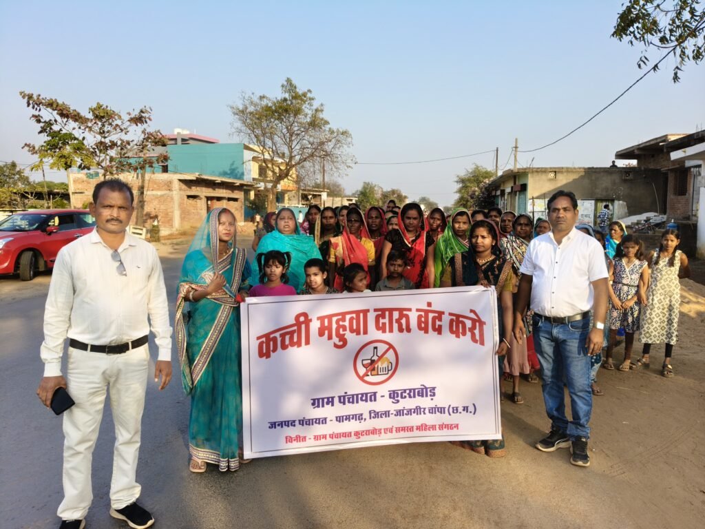 पामगढ़ । ग्राम पंचायत कुटराबोड़ में आज दोपहर तीन बजे से शाम पांच बजे तक सरपंच पुष्कर दिनकर व जनपद सदस्य राजू राय के नेतृत्व में गांव के विभिन्न महिला संगठन ने महुवा शराब बेचने वालों के खिलाफ मोर्चा खोल दिया है।
