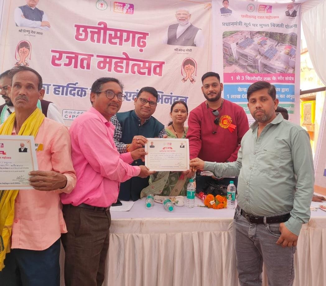 कार्यक्रम के मुख्य अतिथि प्रदेश अध्यक्ष अनुसूचित जाति मोर्चा समन जांगड़े, नगर पंचायत अध्यक्ष कसडोल नागेश्वर साहू, भाजपा मण्डल अध्यक्ष कसडोल सुदीप दास मानिकपुरी, पार्षद एवं पत्रकार भानु प्रताप साहू नीरज साहू, महिला मोर्चा उपाध्यक्ष श्रीमती निर्मला उनका स्वागत विद्युत विभाग के अधीक्षण अभियंता बलौदाबाजार जी.पी. अनंत, कार्यपालन अभियंता कसडोल बी.के. वर्मा सहायक अभियंता कसडोल विनय बाघ द्वारा पुष्प गुच्छ भेंट किया गया। मुख्य अतिथि सनम जांगड़े एवं नागेश्वर साहू ने अपने उद्बोधन में नागरिकों से अधिकाधिक सौर पैनल स्थापित करने बिजली बिल की बचत कर विद्युत बिल कम करने तथा शासन की योजनाओं का अधिकतम लाभ लेने की अपील की साथ ही उन्होंने विद्युत विभाग के अधिकारी कर्मचारी को सहयोग प्रदान करने का भी आग्रह किया।