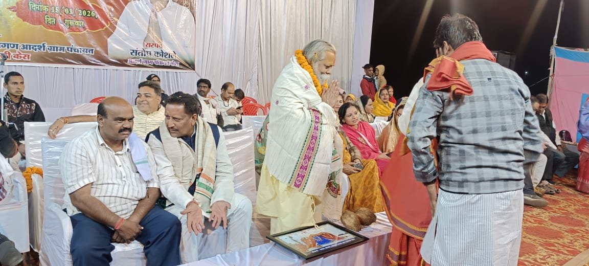 गिधौरी। मकर संक्रांति मेला समापन अवसर पर ग्राम केरा के चित्त्रोत्पला गंगा तट पर महाआरती का सफल आयोजन किया गया। कार्यक्रम के मुख्य अतिथि राजेश्री महन्त रामसुन्दर दास जी महाराज एवं अध्यक्षता छत्तीसगढ़ खनिज निगम बोर्ड के पूर्व अध्यक्ष गिरीश देवांगन ने किया। विधायक व्यास कश्यप सहित अनेक जन प्रतिनिधि कार्यक्रम में बड़ी संख्या में सम्मिलित हुए। प्राप्त जानकारी के अनुसार नवागढ़ विकासखंड अंतर्गत स्थित ग्राम केरा में मकर संक्रांति मेला समाप्ति के अवसर पर चित्त्रोत्पला गंगा महाआरती का भव्य आयोजन किया गया, लोग इसमें बड़ी संख्या मे श्रद्धा -भक्ति के साथ सम्मिलित हुए। अतिथियों का सम्मान शाल, श्रीफल से किया गया। राजेश्री महन्त जी महाराज ने विशाल जनसमुह को संबोधित करते हुए कहा कि -मकर संक्रांति का पर्व हम सभी सनातन धर्मावलंबियों के लिए अत्यधिक महत्वपूर्ण है इस अवसर पर स्नान,दान, पूजा अर्चना, जप तप सभी का अनंत गुना फल प्राप्त होता है। आप लोगों ने महाआरती का आयोजन किया है यह हम सब के लिए गौरव का विषय है, महानदी छत्तीसगढ़ राज्य की जीवन रेखा है। उन्होंने कहा कि इस कार्यक्रम का मुख्य अतिथि आप लोगों ने मुझे बनाया है मेरे स्थान पर यदि आदरणीय गिरीश देवांगन जी को बनाते तो यहां महानदी में पुल निर्माण का लंबित मांग तत्काल पूरा हो जाता, (इस कथन पर लोगों ने खूब तालियां बजाई।) उन्होंने कहा कि मुख्यमंत्री रहते हुए भूपेश बघेल जी ने यहां के विकास पर बहुत ध्यान दिया आज उनके प्रतिनिधि के रूप में गिरीश जी आए हैं। कार्यक्रम के अध्यक्ष देवांगन जी ने कहा कि – इस कार्यक्रम में पूर्व मुख्यमंत्री जी को आना था किंतु आज उनके डोंगरगढ़ जिले में तीन कार्यक्रम हैं इसलिए यहां आने में बहुत देरी हो जाती, उन्होंने आप सभी से क्षमायाचना की है और मुझे आप लोगों के समक्ष भेजा है, फिर कभी वे आएंगे । मेला स्थल तक सीसी रोड निर्माण, लाइट की व्यवस्था, महाविद्यालय की स्थापना आदि अनेक कार्य भूपेश जी ने यहां के लिए किया है, यह सब उन्हें याद है। लोगों को विधायक कश्यप जी ने भी संबोधित किया।