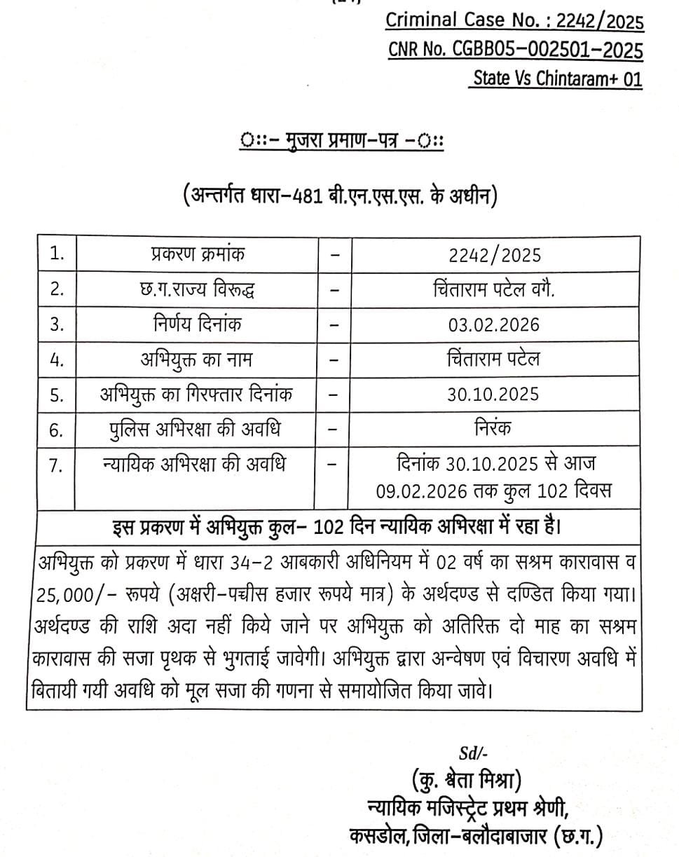 कसडोल कोर्ट का बड़ा फैसला: शराब माफियाओं को 2-2 वर्ष का जेल और भारी जुर्माना, लगातार परोस रहें थे शराब