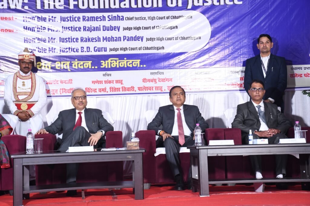 जिला न्यायालय परिसर में “विधि का शासन न्याय की आधारशिला” विषय पर आयोजित सेमिनार में मुख्य न्यायाधीश एवं अतिथिगणों का जिला अभिभाषक संघ द्वारा भव्य स्वागत किया गया। समारोह की शुरुआत मुख्य न्यायाधिपति एवं न्यायमूर्तियों द्वारा मां सरस्वती के छायाचित्र पर पूजा-अर्चना कर की गई। कार्यक्रम में वक्ता के रूप में अधिवक्ता दिनेश तिवारी एवं गौरवी मिश्रा ने अपने विचार व्यक्त किए। स्वागत भाषण ठाकुर बी. पी. सिंह,अभिनंदन पत्र वाचन एवं मंच संचालन सचिव गणेश शंकर साहू एवं आभार प्रदर्शन अध्यक्ष मो. शारिक खान ने किया।