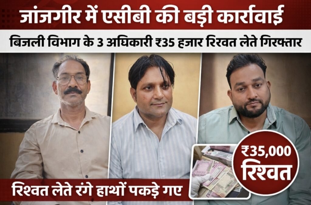 जांजगीर में एसीबी की बड़ी कार्रवाई: बिजली विभाग के 3 अधिकारी ₹35 हजार रिश्वत लेते रंगे हाथ गिरफ्तार