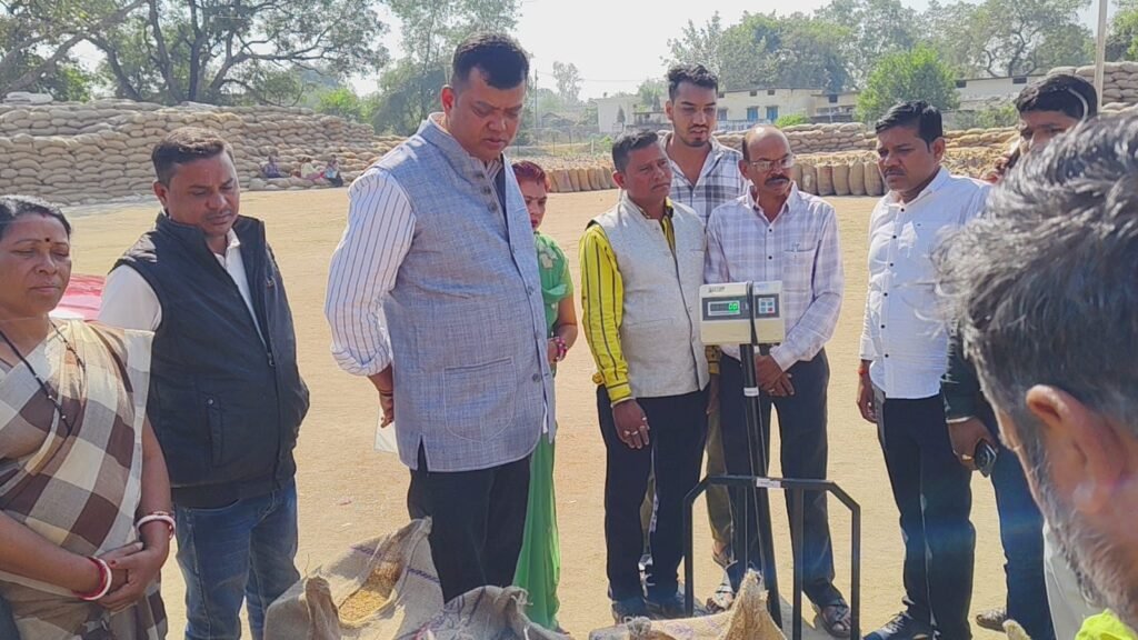 विधायक संदीप साहू ने उपार्जन केंद्र कसडोल का किया निरीक्षण, तौल मशीन से किसानों का धान तौला, किसानों से किया बातचीत