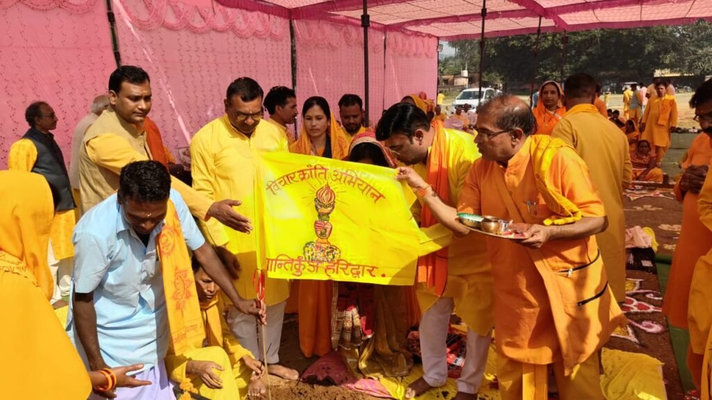 108 कुण्डीय शक्ति संवर्धन गायत्री महायज्ञ के भूमि पूजन के साथ प्रारंभ हुआ तैयारियों का शुभारंभ