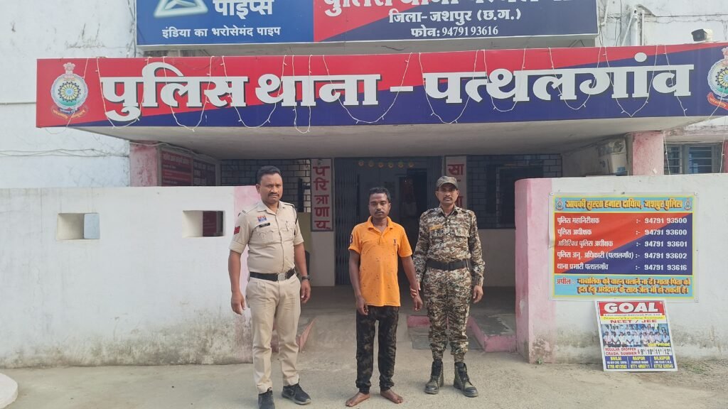 पत्थलगांव । पत्थलगांव थाना क्षेत्र के ग्राम पंचायत इंजको में देशी कट्टा के साथ पैदल घूम रहे एक युवक को पुलिस ने गिरफ्तार किया गया है। पत्थलगांव एसडीओपी ध्रुवेश जायसवाल ने बताया कि पत्थलगांव पुलिस के टीम गस्ती के लिए गांव के तरफ जा रही थी. देहात भ्रमण के दौरान ग्राम इंजको, ईला, किलकिला, बहनाटांगर तरफ निकला था कि देहात भ्रमण करते हुए किलकिला से पत्थलगांव वापस आते समय ग्राम इंजको के पास पहुंचा था कि मुखबिर से सूचना प्राप्त हुई कि ग्राम कुनकुरी संधवार पारा मेन रोड में बालक पोड़ी मोड़ के पास कुनकुरी निवासी ज्ञानेश्वर सिदार पिता सोहन साय सिदार अपने पास एक देशी कट्टा रखकर पैदल घूम रहा है। मुखबिर सूचना पर पहुंची पुलिस को देखकर पैदल जा रहा है युवक दौड़कर भागने का प्रयास करने लगा जिसे घेराबंदी कर पकड़ा गया तथा आरोपी जानेश्वर सिदार निवासी कुनकुरी से पूछताछ किया गया. जहां ज्ञानेश्वर सिदार का तलाशी लेने पर उसके पहने पेंट के दाहिने तरफ के जेब में एक देशी कट्टा रखा हुआ मिलने पर उक्त देशी कट्टा को जब्त किया गया आरोपी के विरुद्ध आर्म्स एक्ट 25 के तहत गिरफ्तार कर उसे जेल भेज दिया गया । इस कार्यवाई में टीआई विनीत पांडेय, प्रधान आरक्षक मिथलेश यादव, आरक्षक तुलसी रात्रे, आशीषन प्रभात टोप्पो, पदुम वर्मा, वीरेंद्र यादव की सक्रिय भूमिका रही.