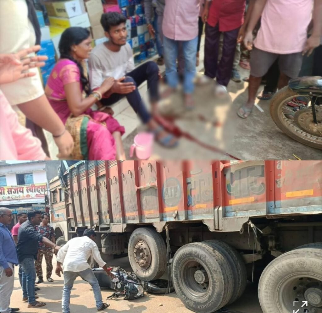 ट्रक ने बाइक सवार भाई-बहन को लिया चपेट में, भाई का पैर बुरी तरह से कुचला