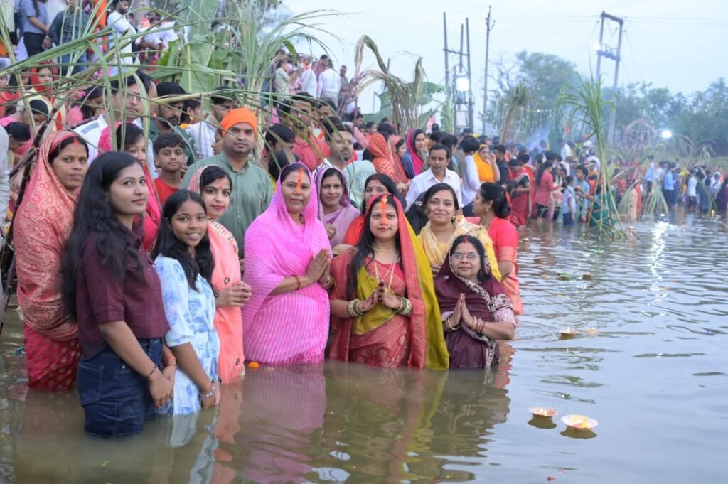 सूर्य उपासना के पर्व छठ में पत्थलगांव हुआ रोशन, गोमती साय ने अपने हाथों से बांटा प्रसाद
