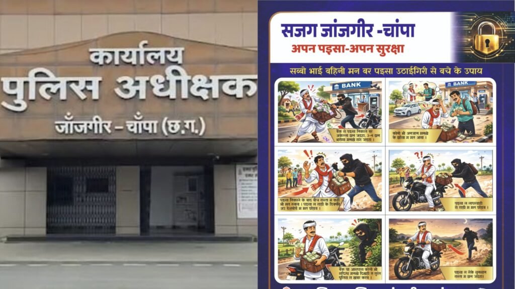 जांजगीर चांपा / जिले में बैंक से धनराशि निकालकर घर लौट रहे किसानों एवं ग्रामीण नागरिकों के साथ हो रही ठगी की बढ़ती घटनाओं को देखते हुए पुलिस विभाग ने जागरूकता अभियान शुरू किया है। इसी कड़ी में पुलिस अधीक्षक विजय कुमार पाण्डेय (IPS) द्वारा ठगी से बचाव संबंधी जागरूकता पोस्टर का विमोचन किया गया।