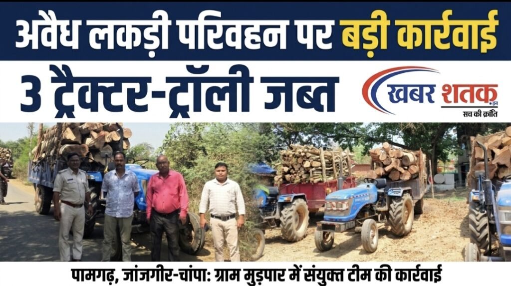 जांजगीर-चांपा। पामगढ़ तहसील अंतर्गत ग्राम मुड़पार (ब) में आज राजस्व, पुलिस एवं वन विभाग की संयुक्त टीम ने बड़ी कार्रवाई करते हुए कमर्शियल उपयोग के लिए अवैध रूप से लकड़ी परिवहन करते पाए जाने पर लकड़ी सहित 3 ट्रैक्टरों को जब्त किया है। जब्त वाहनों को थाना पामगढ़ की सुपुर्दगी में सौंप दिया गया है।