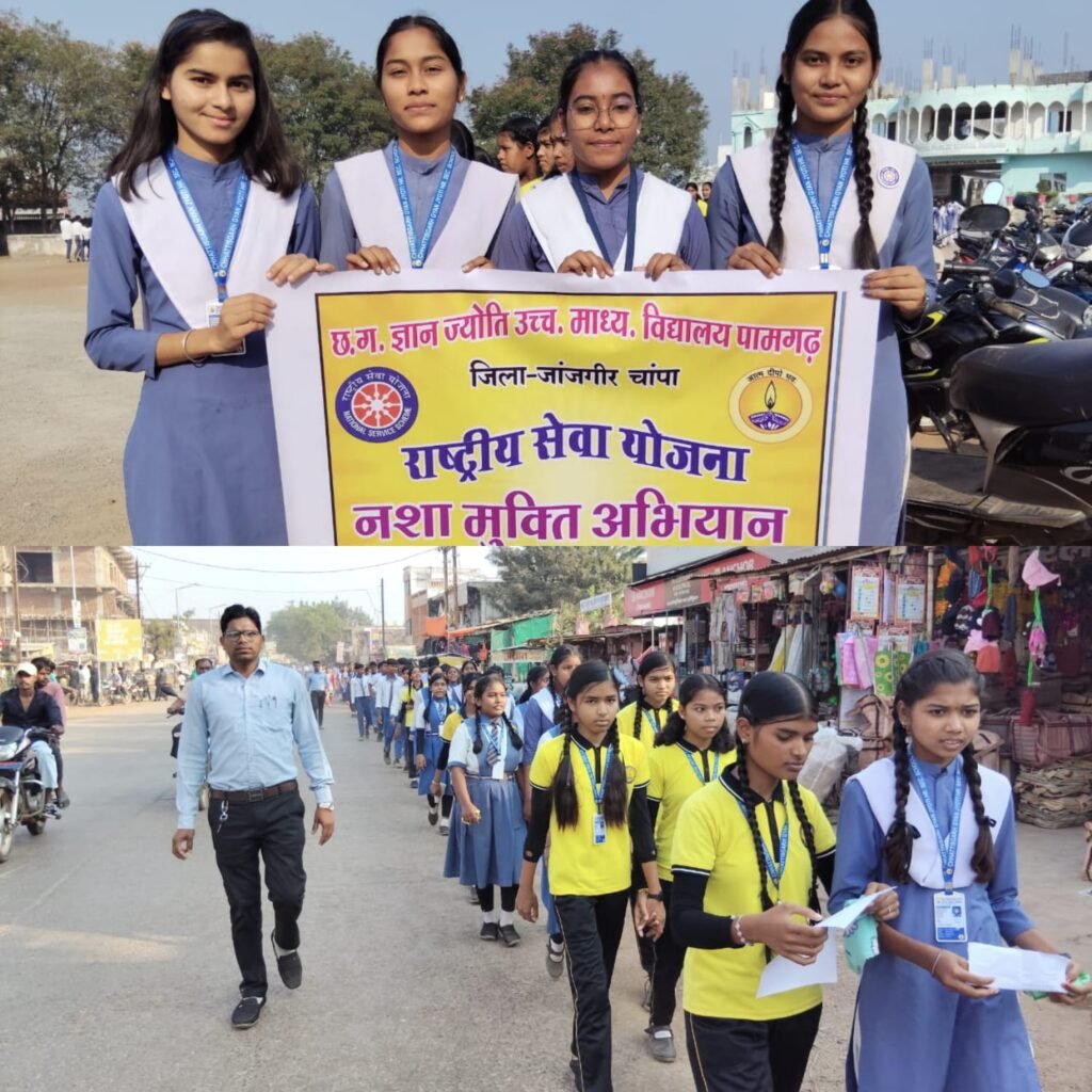 छत्तीसगढ़ ज्ञान ज्योति उच्चतर माध्यमिक विद्यालय पामगढ़ के छात्रों ने नशा मुक्ति के लिए किया जागरूक