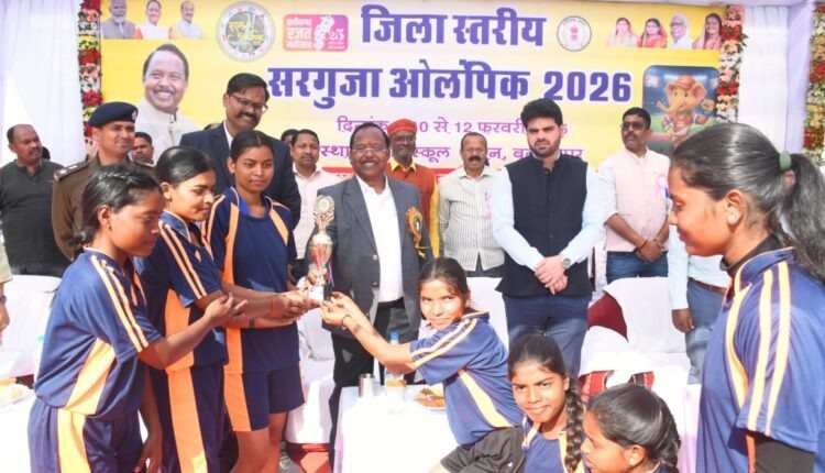 रायपुर: आदिम जाति विकास तथा कृषि विकास एवं किसान कल्याण मंत्री  रामविचार नेताम के मुख्य आतिथ्य में बलरामपुर में जिला स्तरीय सरगुजा ओलंपिक का समापन हुआ। खेल एवं युवा कल्याण विभाग द्वारा बलरामपुर के स्वामी आत्मानंद हिन्दी माध्यम विद्यालय के खेल मैदान में 10 फरवरी से 12 फरवरी तक इसका आयोजन किया गया था। इस तीन दिवसीय आयोजन में खेल प्रतिभाओं के उत्साह, कौशल और ऊर्जा का अद्भुत संगम देखने को मिला।