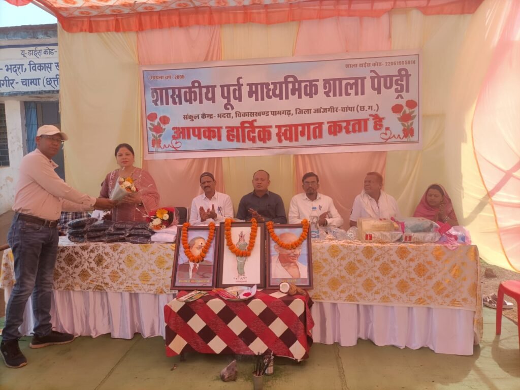 प्रतिभा सम्मान और न्योता भोजन कार्यक्रम, शासकीय पूर्व माध्यमिक शाला पेण्ड्री में मेधावी छात्रों का सम्मान