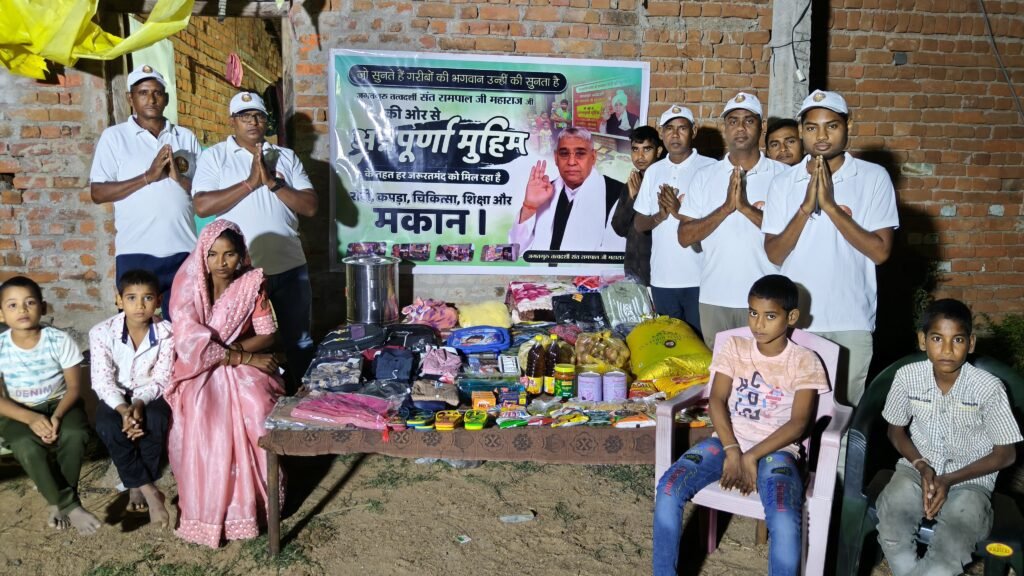 संकटग्रस्त विधवा बहन के परिवार को अन्नपूर्णा मुहिम से मिला संबल, ग्राम रामपुर में संत रामपाल के अनुयायियों ने दी सहायता सामाग्री