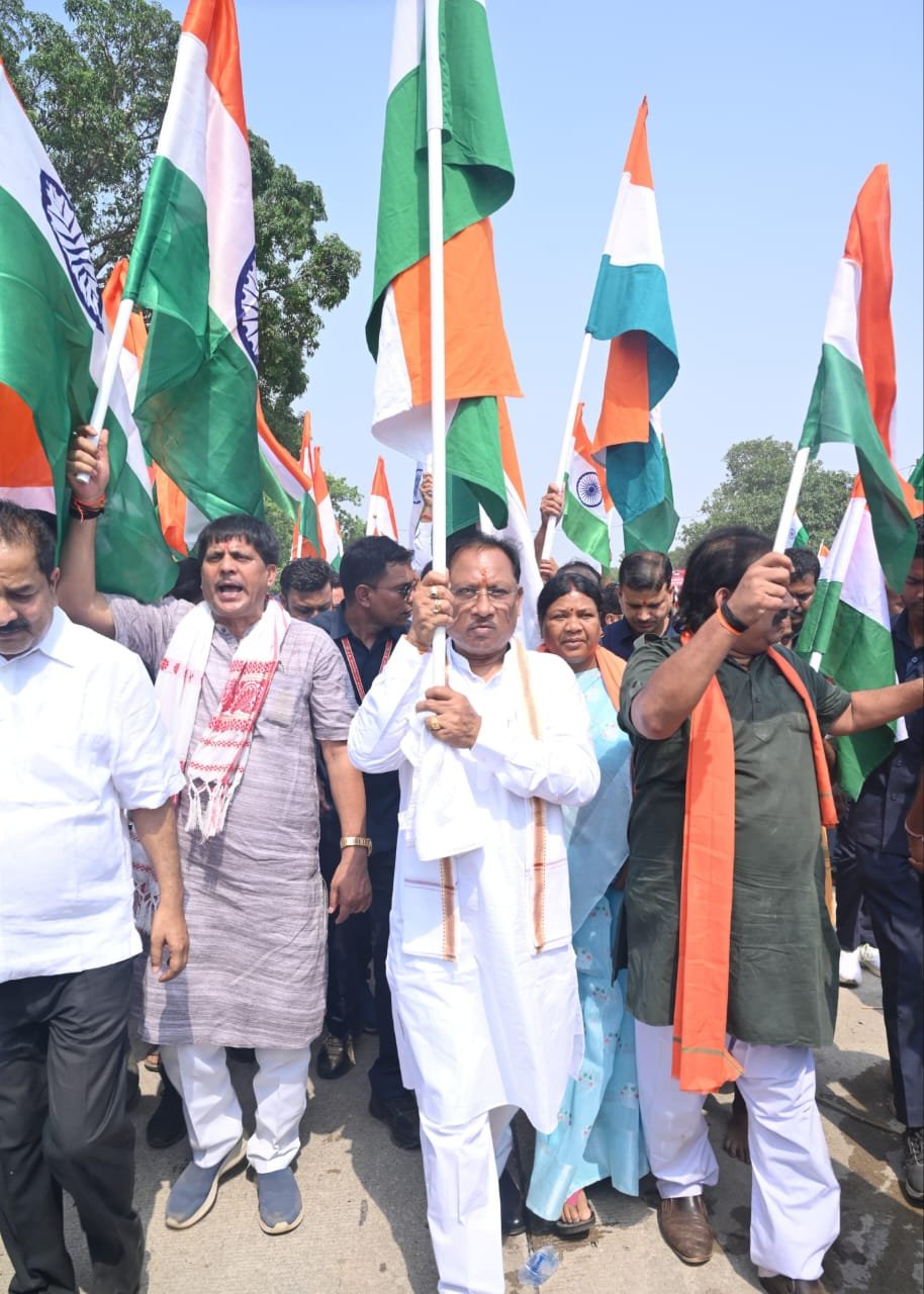 मुख्यमंत्री श्री विष्णु देव साय के साथ जनप्रतिनिधि और बड़ी संख्या में आम नागरिक हाथ में तिरंगा लेकर यात्रा में शामिल हुए