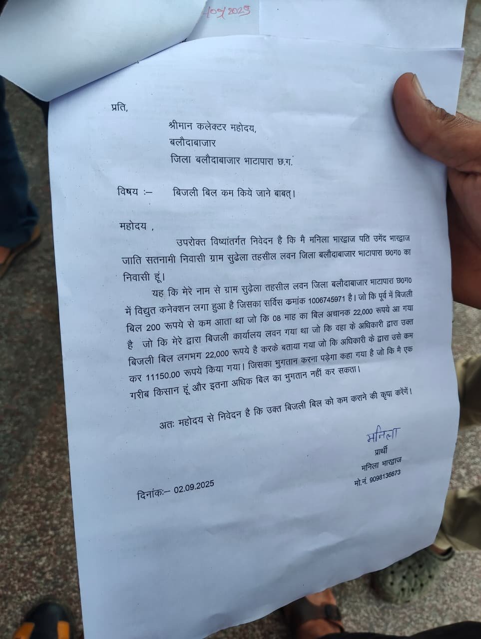 बलौदाबाजार: जिले में बिजली विभाग की मनमानी का हैरान करने वाला मामला सामने आया है। ग्राम सुढ़हेला निवासी विश्वनाथ भारद्वाज मंगलवार को गले में स्मार्ट मीटर लटकाए हुए कलेक्टर कार्यालय पहुंचे। उनकी शिकायत है कि विभाग ने आठ महीनों तक कोई बिजली बिल नहीं थमाया और अचानक उन्हें 22 हजार रुपए का भारी-भरकम बिल दे दिया गया।